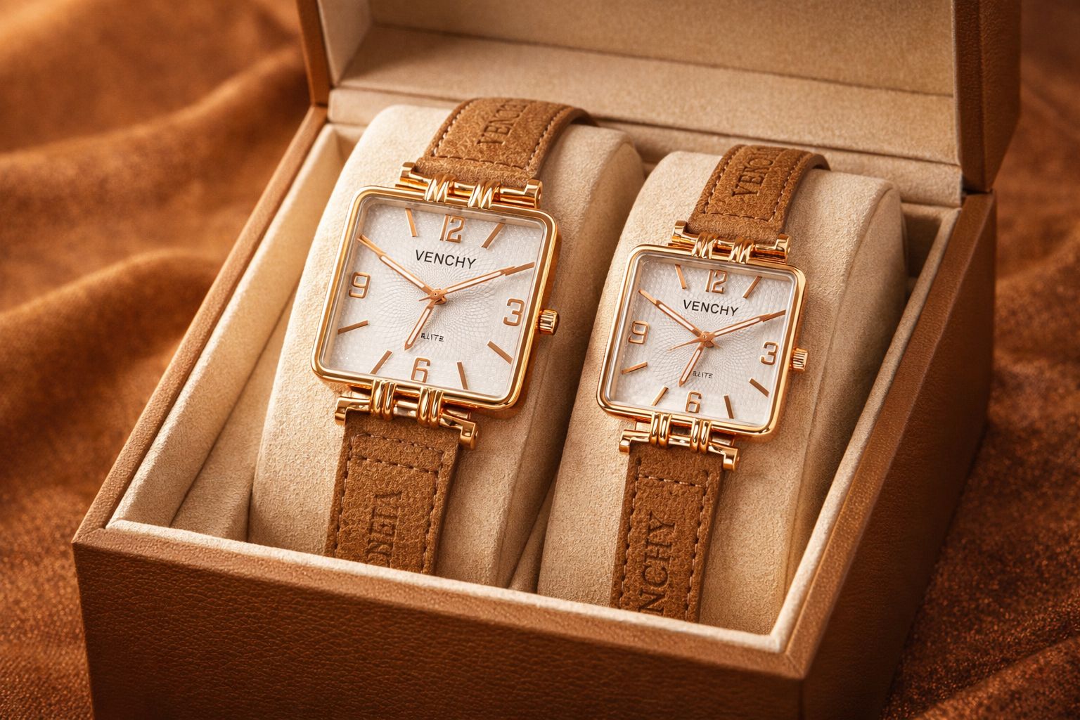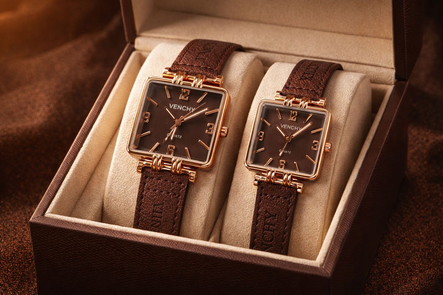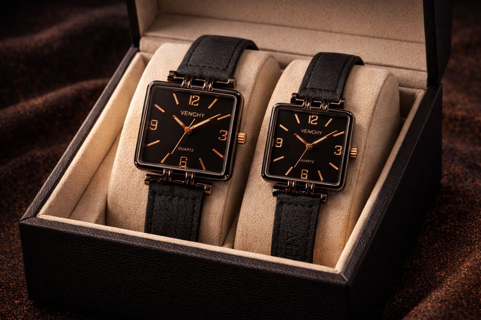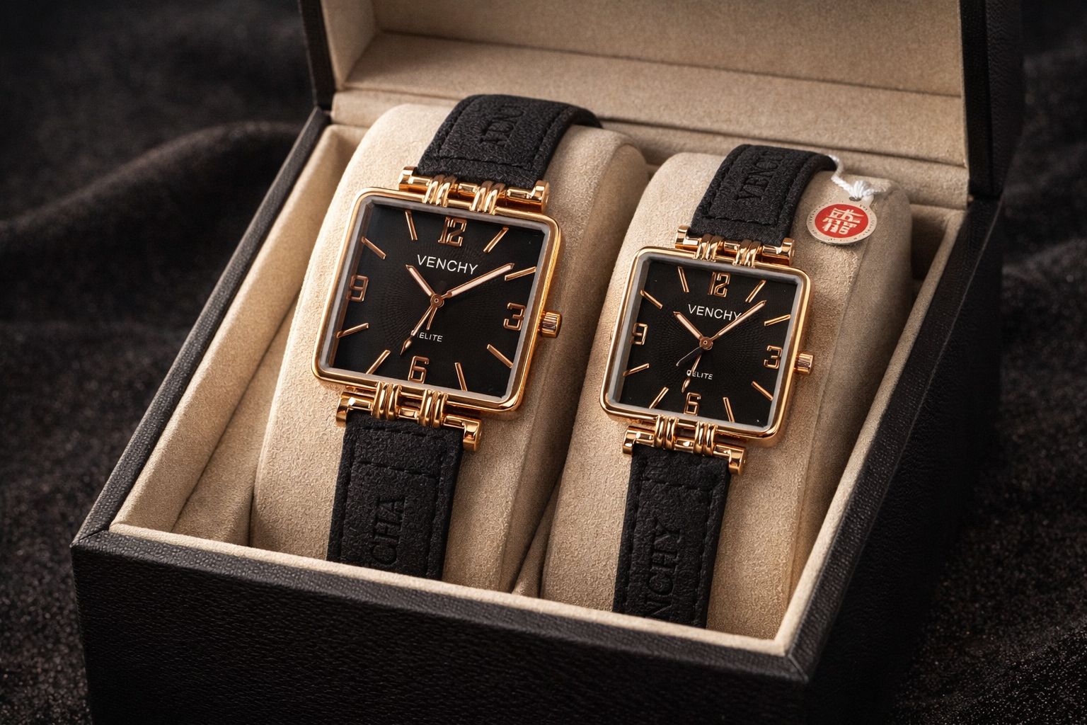 COUPLE WATCH SQUARE DIAL BRAND NAME PRINT ON DIAL STRAP & BACK GOOD QUALITY